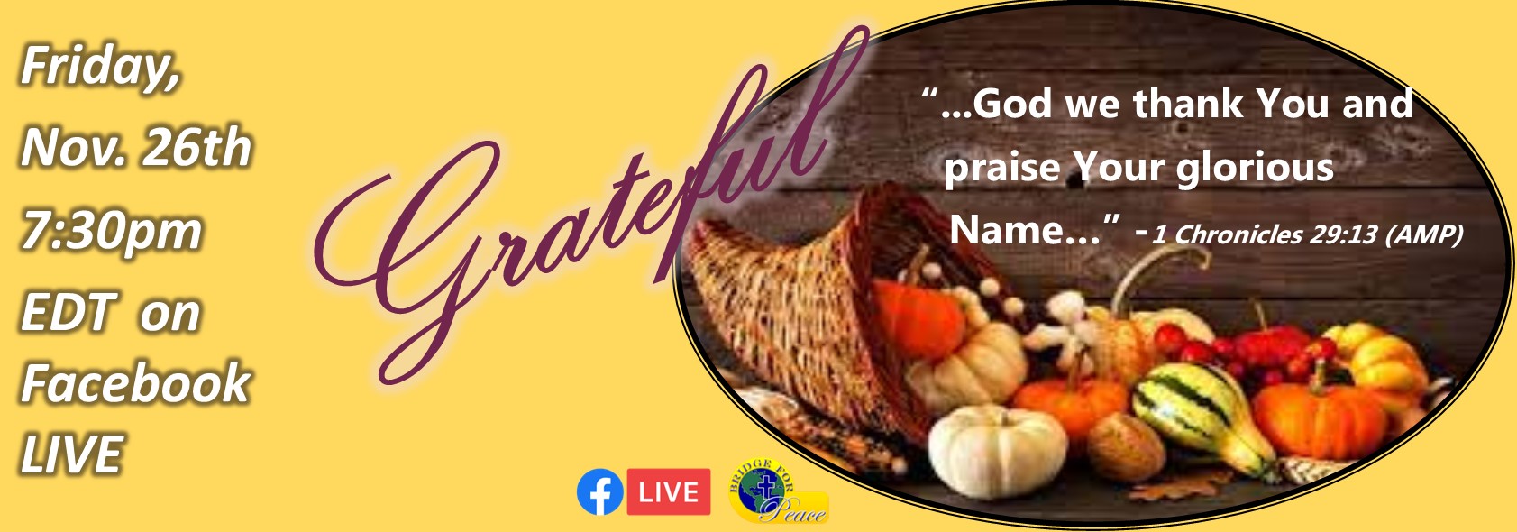 7:30 pm EDT on Bridge for Peace Facebook Live